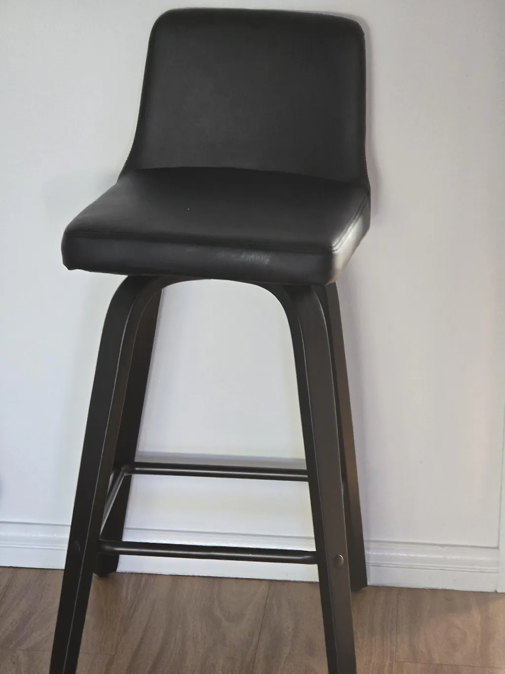 The generously padded 6cm cushioned seat is made from premium polyurethane leather with a backrest, that can swivel a full 360 degrees for maximum comfort. Supported by a strong and durable wooden walnut frame with an all-around black powder-coated steel footrest. Fitted with anti-slip rubber feet for added stability.