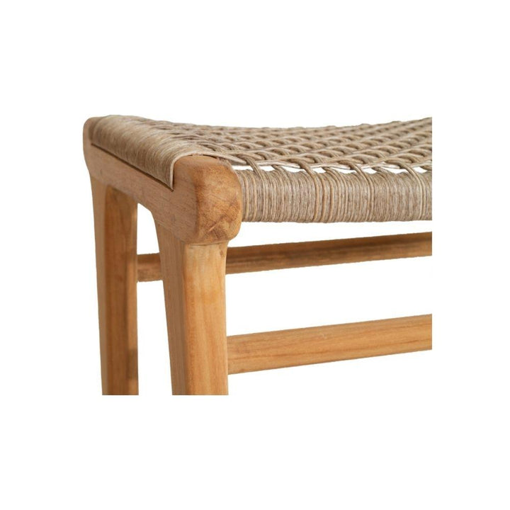 This wooden counter stool combines the beauty of a sustainable teak wood frame with a viro synthetic cord backless seat and is fitted with all-around multi-level footrests. Ideal for indoor or outdoor use.