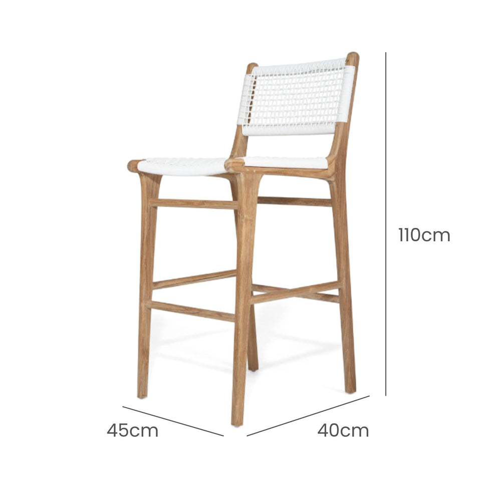 Kai Wooden Bar Stool (Close Weave) White 75cm