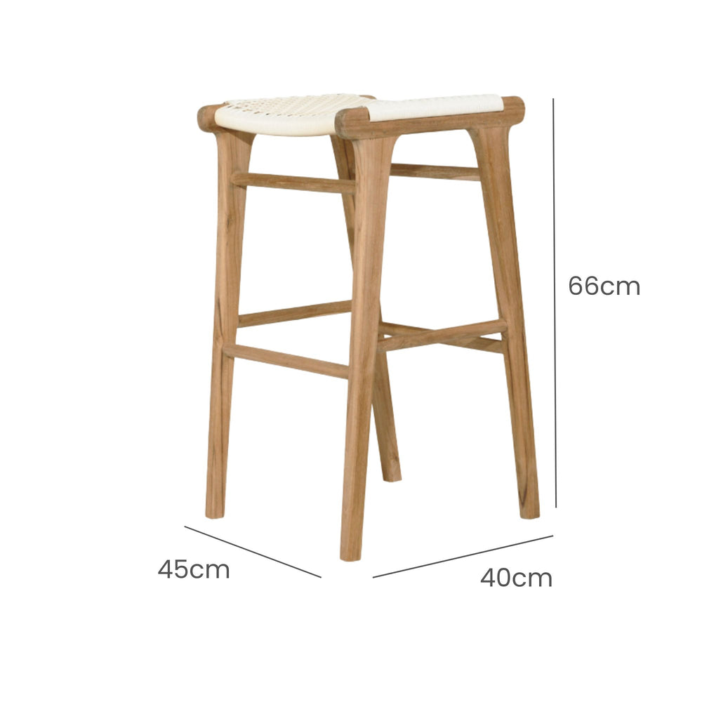 Bar Stools - Mahlia Kitchen Stool Wooden Cord White 65cm