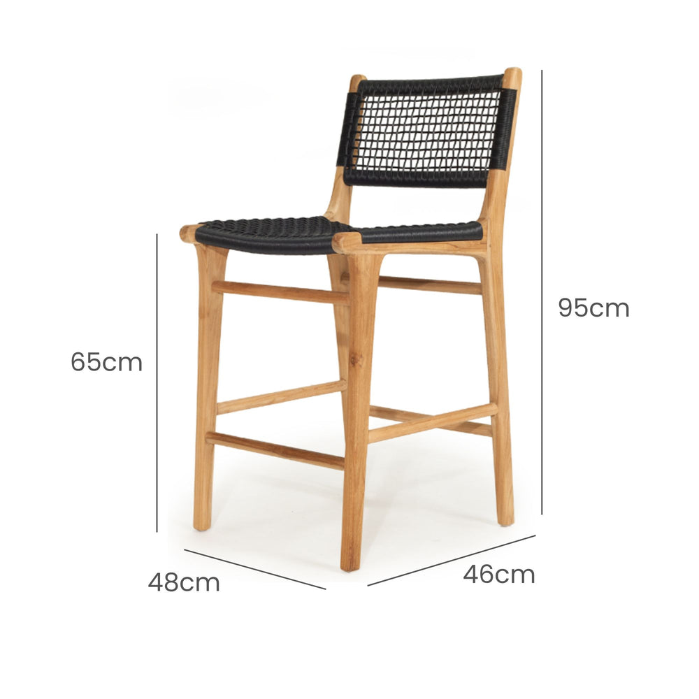 Bar Stools - Mahlia Kitchen Stool Wooden Cord Black 65cm