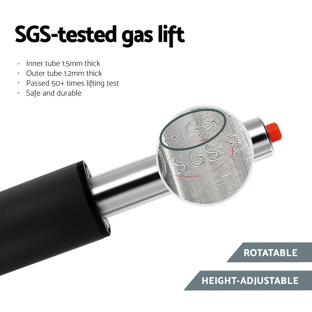 Fitted with a generously padded seat with an adjustable height and a full 360-degree swivel. Supported by a strong and durable rust-proof powder-coated steel frame with a circular all-around footrest. A 39cm wide base with an anti-slip floor protector for added stability.