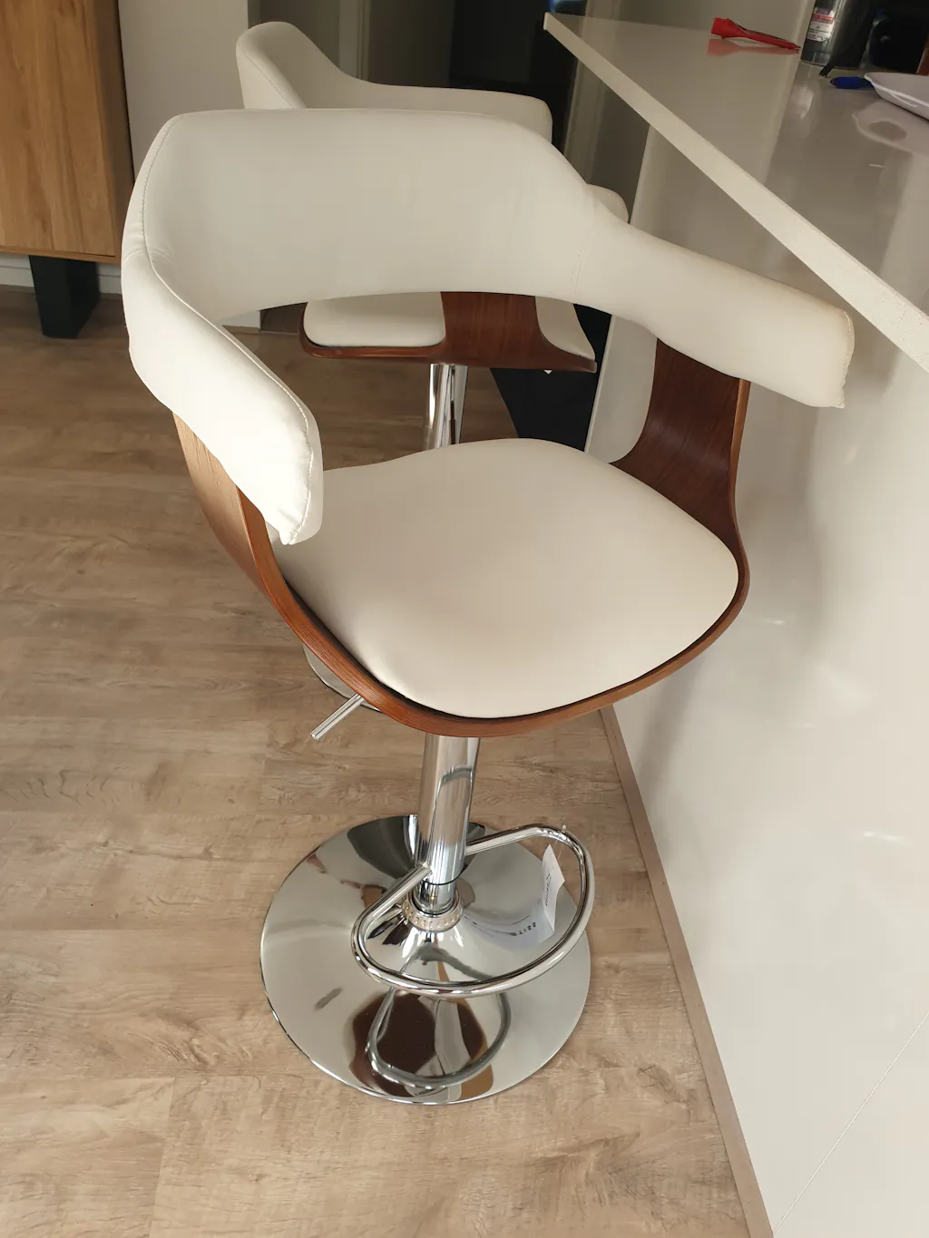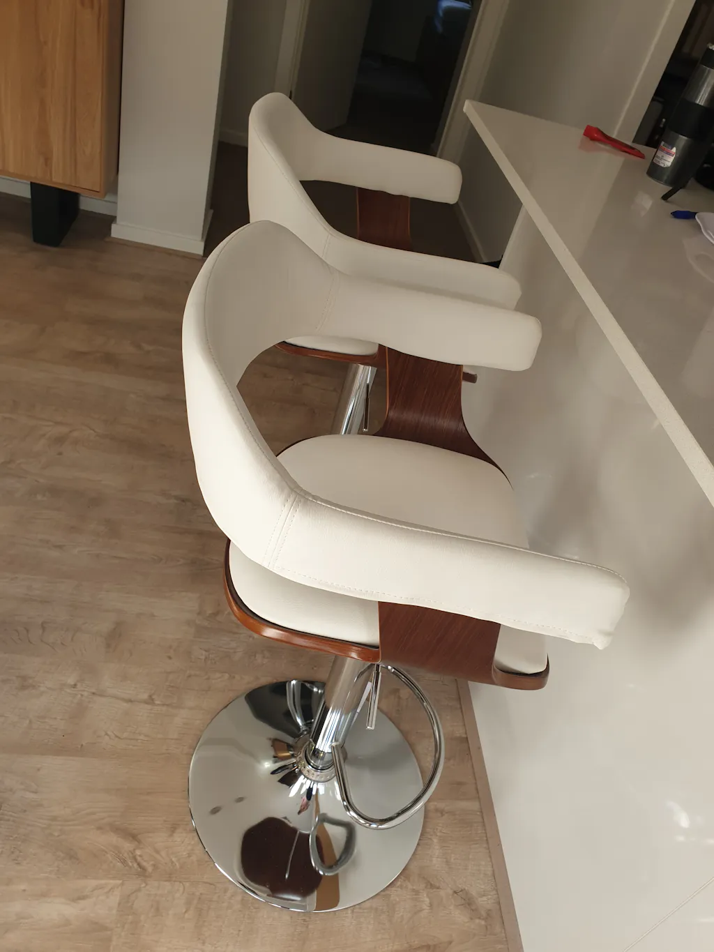 Bar Stools - Donna Leather Wooden Swivel Kitchen Bar Stool White